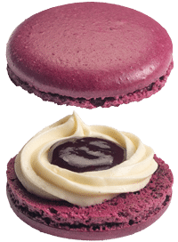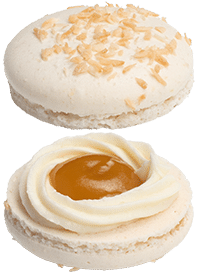 In jedem Macaron enthalten: MILCH, SOJA, MANDELN, EI
